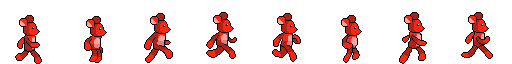 The run and swim cycles of the player character, a red and mouse-like imaginary friend.